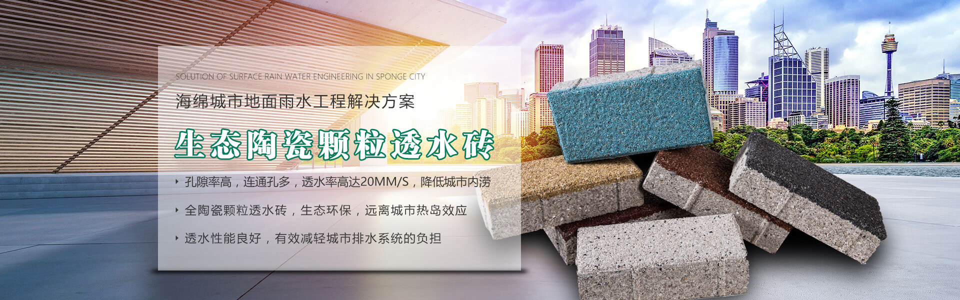 四川銘成永美環??萍加邢薰荆╳ww_mcotcn_com.yhcyego.cn)是國內非常早研究探索海綿城市的企業之一,公司主導產品:海綿城市鋪路磚家---銘成永美生態陶瓷透水磚已在全國多個重點項目使用。公司透水混凝土、雨水收集利用系統正在全國推廣。公司將整合海綿城市規劃設計、污水處理、污泥利用、環保設備、社會資本等海綿城市相關產業。為解決城市“熱島效應”、地表硬化,防止城市內澇,營造高質量的自然生態環境,改善城市生態平衡而不斷努力!公司將充分利用現有的互聯網資訊平臺,整合生態海綿城市產業鏈,打造集互聯網、科研、生產、銷售、規劃設計、PPP項目營運、工程施工為一體的綜合性環??萍脊荆殉醪浇⒏采w全國的業務團隊和渠道。